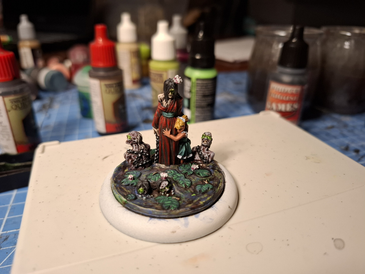 On était pas mal en l'état, il était temps de faire le tour de socle (au marqueur à peinture de chez Action, merci du conseil Minus !) puis de vernir tout ça. Vernis brillant sur l'eau et le tour est joué, on valide la proposition comme ça !