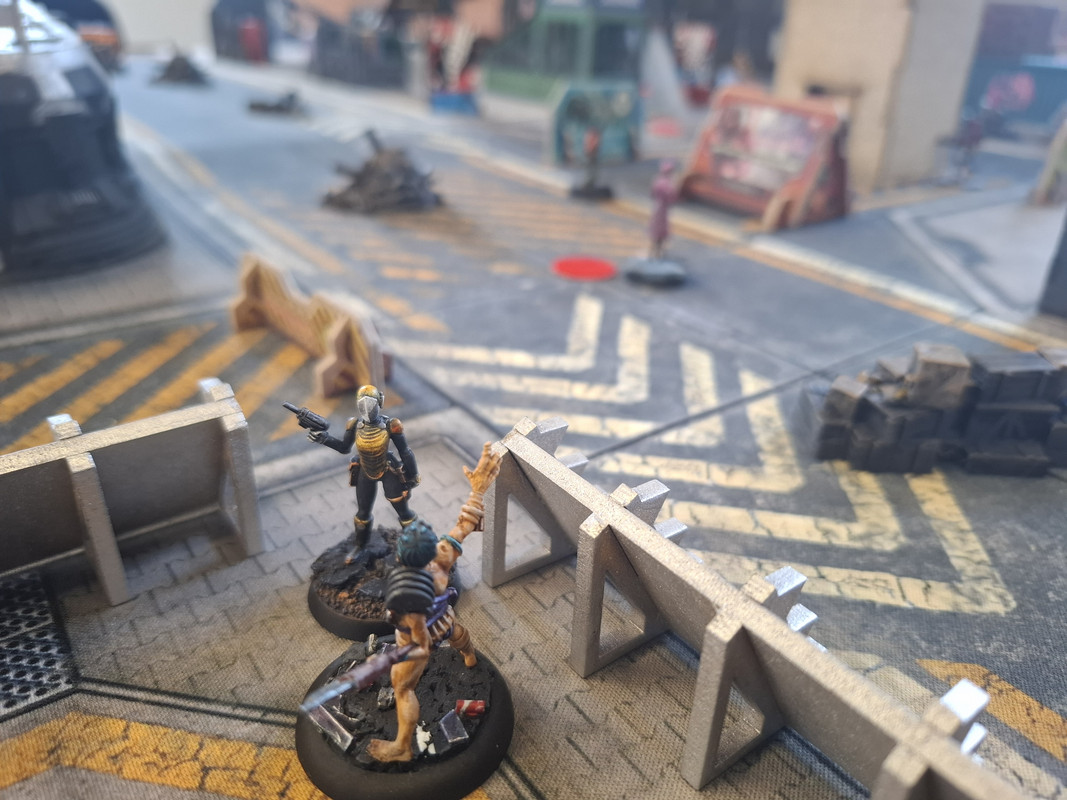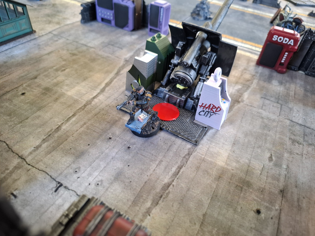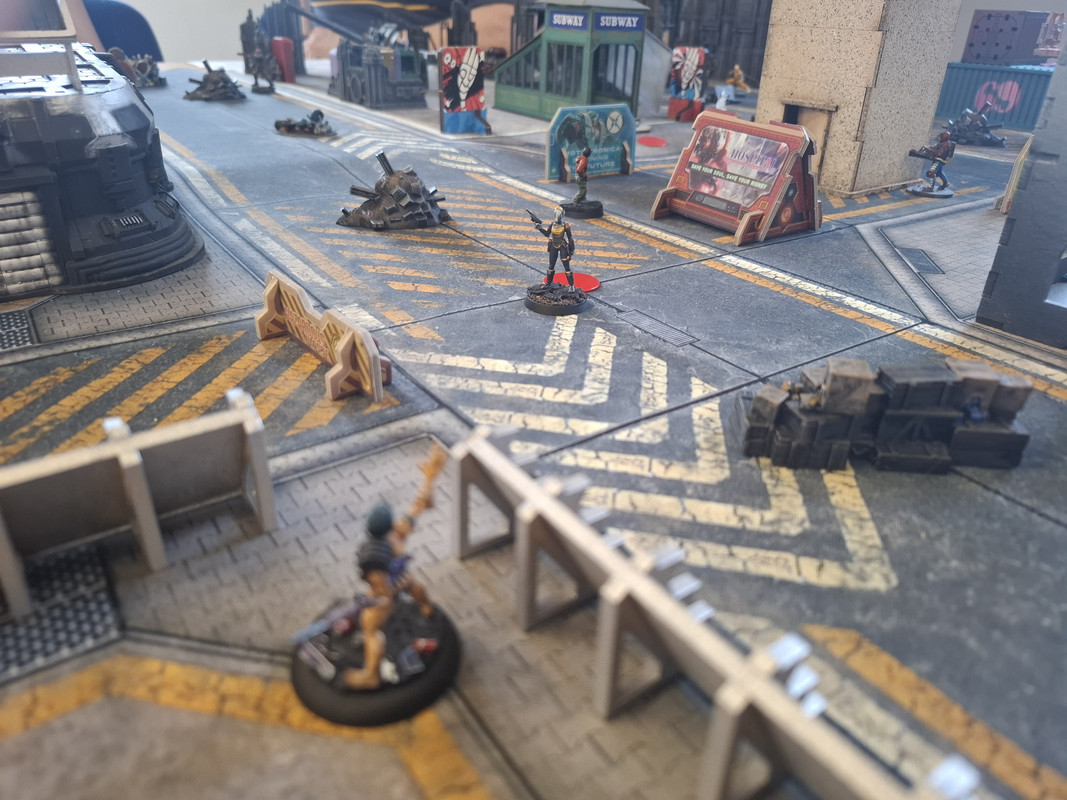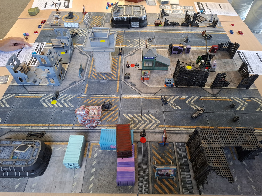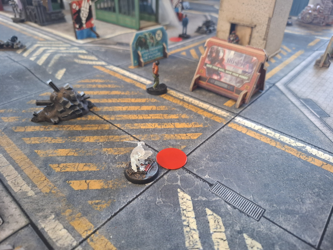 Pour rappel, le jeu propose d'incarner un chasseur de primes qui se rend dans "la zone" où sont balancés régulièrement des criminels qui pensent pouvoir obtenir la liberté s'ils ne se font pas dessouder avant par les chasseurs. Le tout filmé en permanence pour en faire un show d'exception à la télé d'un futur pas si lointain... J'avais rédigé un premier article à son propos ici lorsque j'avais découvert le jeu avec Tobias. Un second article avec ma propre table et mes figurines a vu le jour cette année il y a plus d'un an déjà (bon sang...).