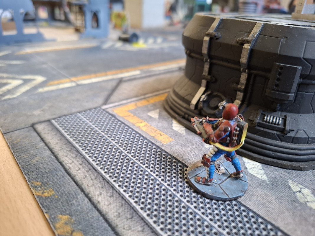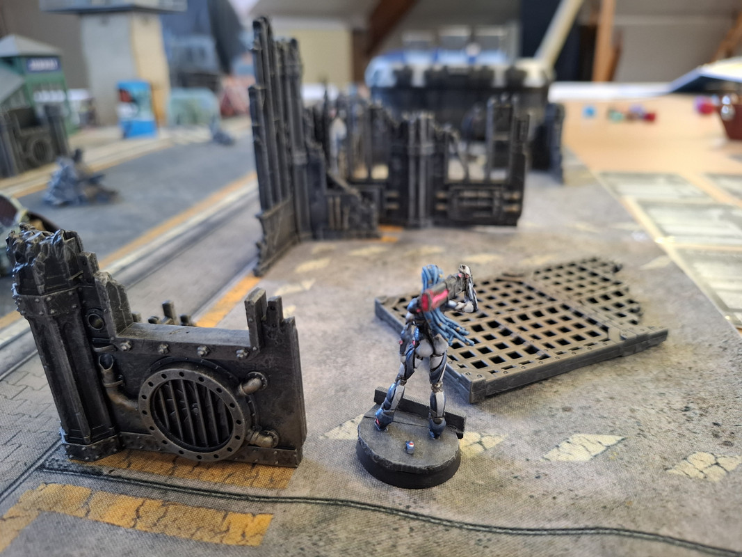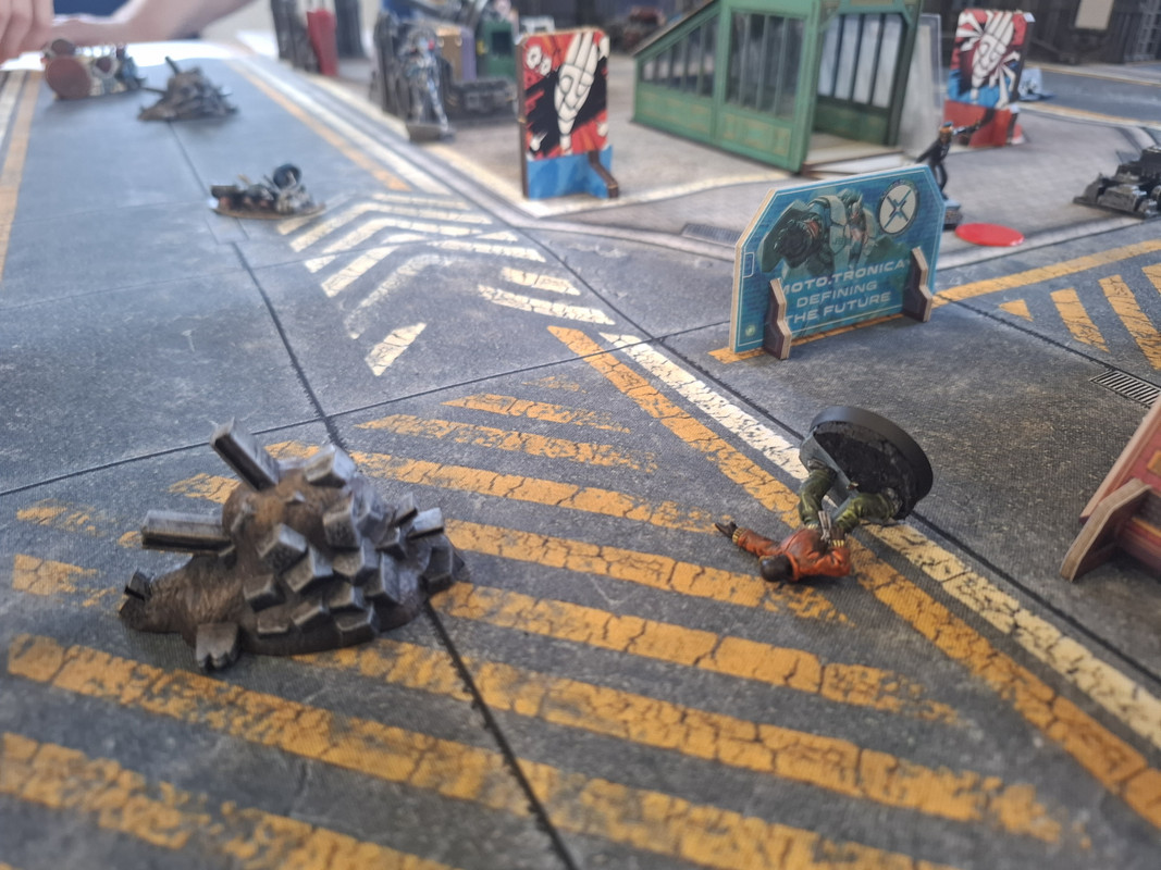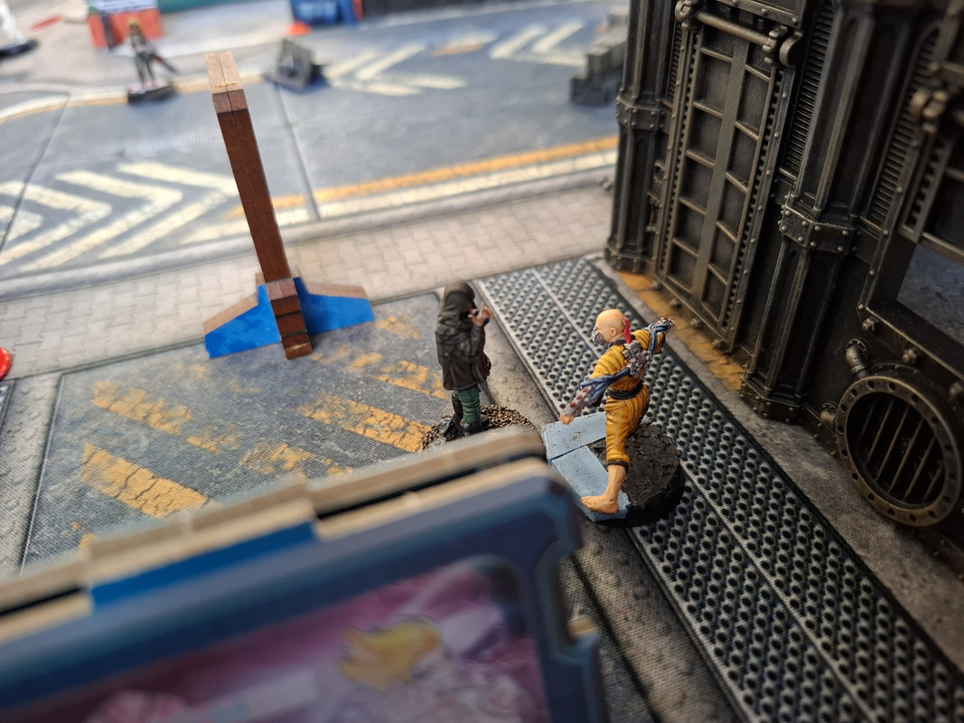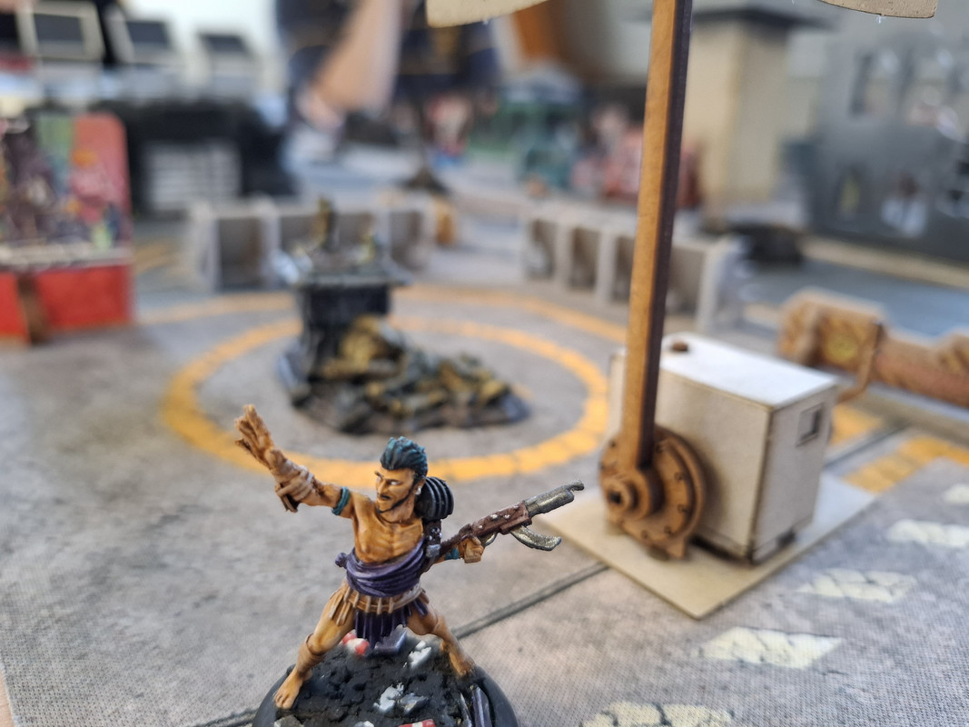 Pour rappel, le jeu propose d'incarner un chasseur de primes qui se rend dans "la zone" où sont balancés régulièrement des criminels qui pensent pouvoir obtenir la liberté s'ils ne se font pas dessouder avant par les chasseurs. Le tout filmé en permanence pour en faire un show d'exception à la télé d'un futur pas si lointain... J'avais rédigé un premier article à son propos ici lorsque j'avais découvert le jeu avec Tobias. Un second article avec ma propre table et mes figurines a vu le jour cette année il y a plus d'un an déjà (bon sang...).