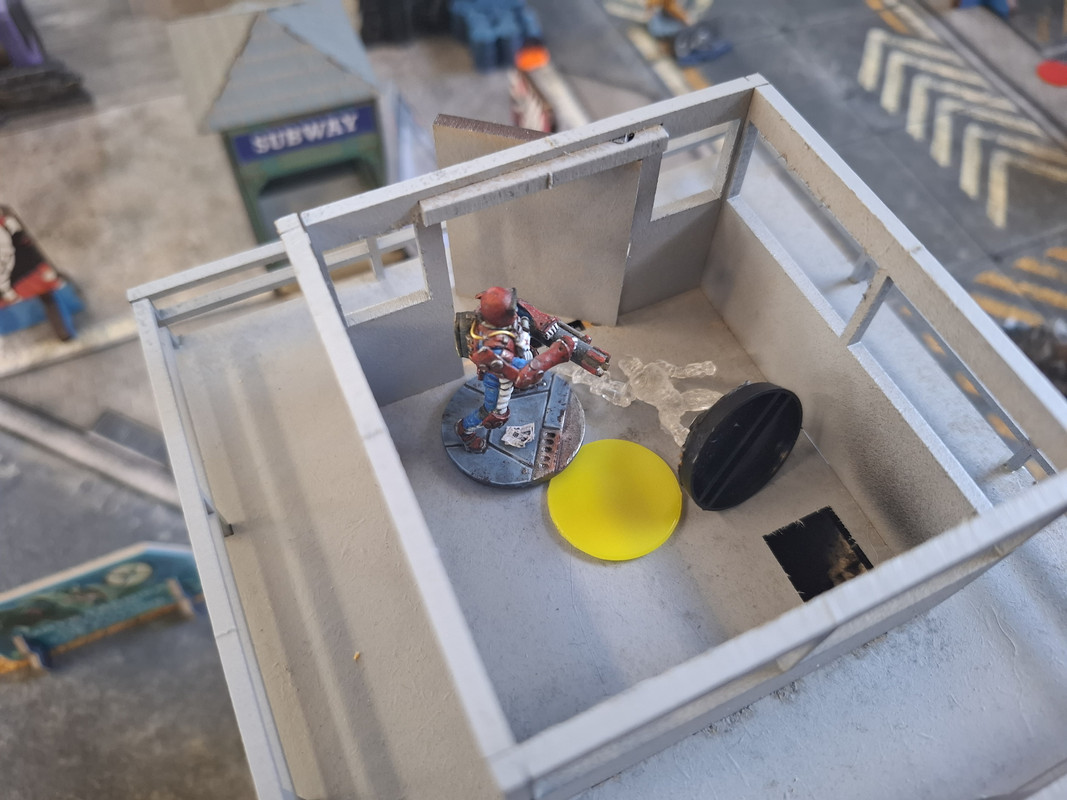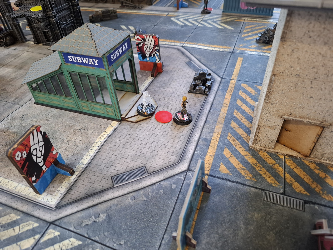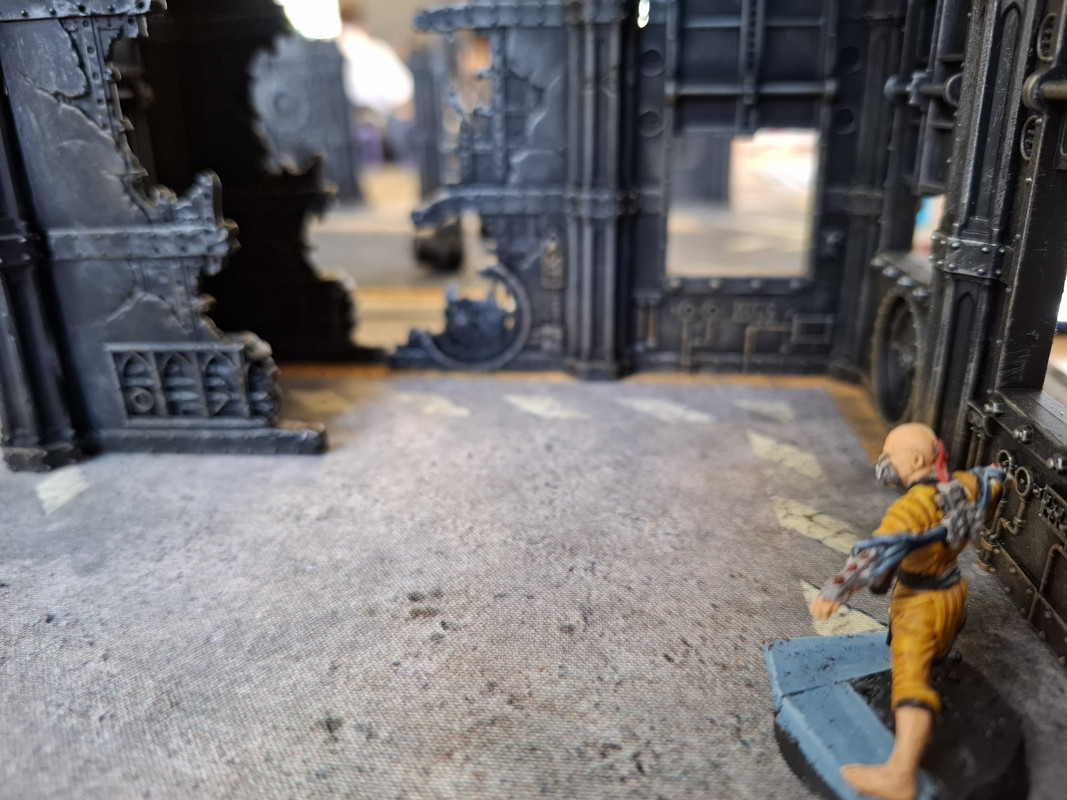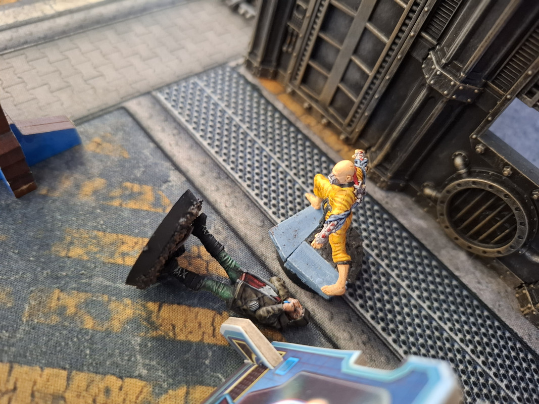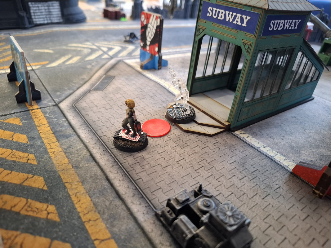Pour rappel, le jeu propose d'incarner un chasseur de primes qui se rend dans "la zone" où sont balancés régulièrement des criminels qui pensent pouvoir obtenir la liberté s'ils ne se font pas dessouder avant par les chasseurs. Le tout filmé en permanence pour en faire un show d'exception à la télé d'un futur pas si lointain... J'avais rédigé un premier article à son propos ici lorsque j'avais découvert le jeu avec Tobias. Un second article avec ma propre table et mes figurines a vu le jour cette année il y a plus d'un an déjà (bon sang...).