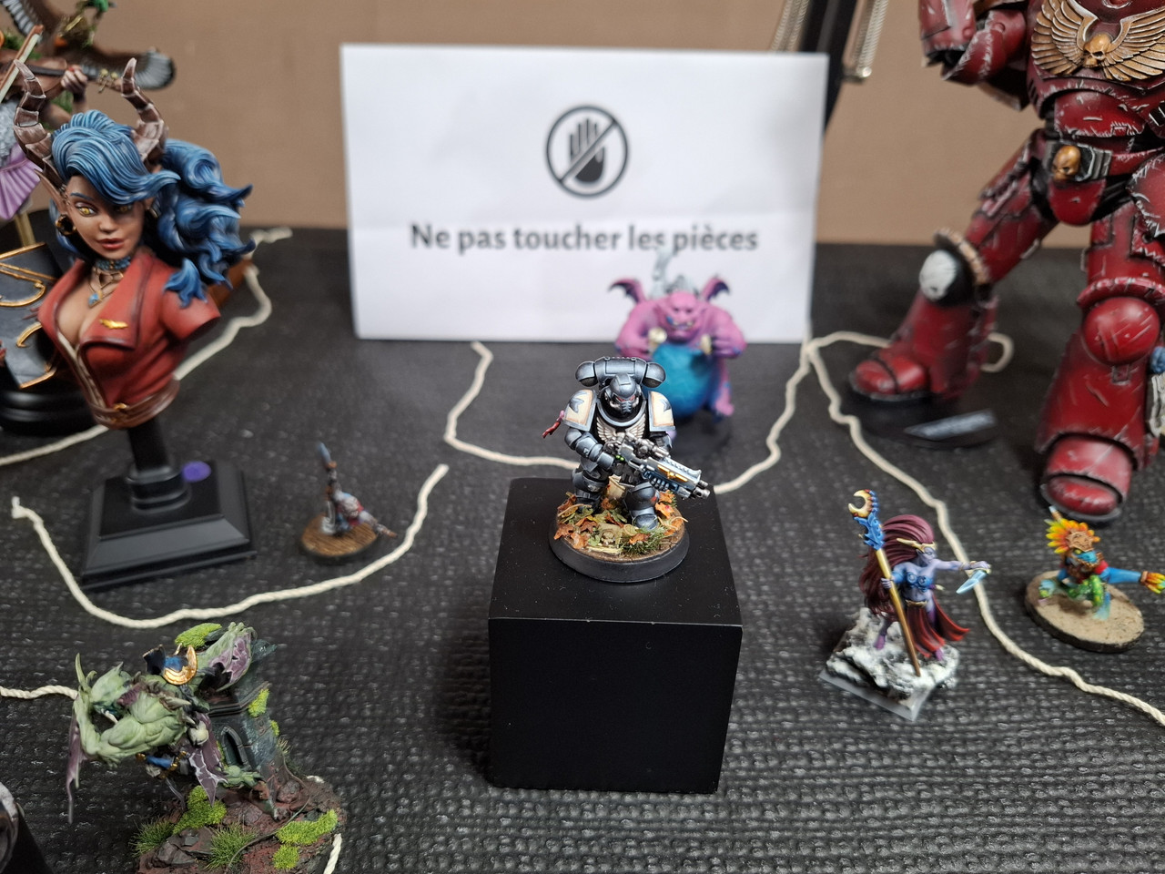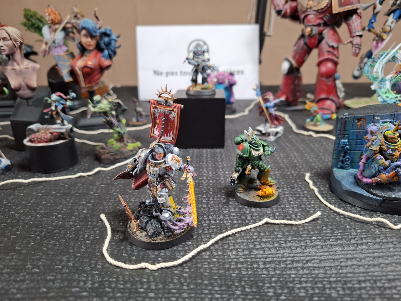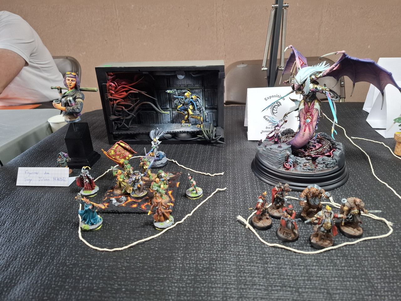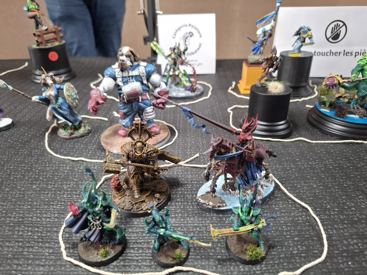 | Je l'avoue tout de suite, je n'ai pas pris de photos des tournois... Il n'y avait pas trop de place pour leur tourner autour, je ne voulais pas déranger. Il y avait toutefois de très belles tables : 40k, Old World, Infinity, Sda... |