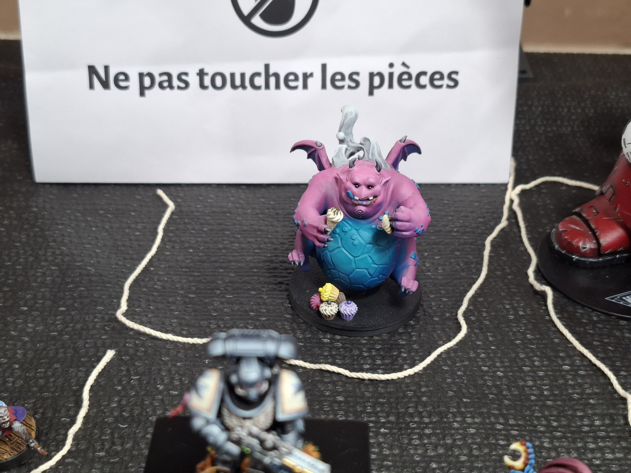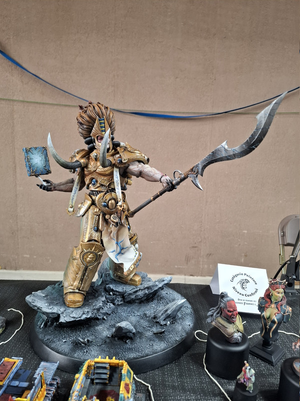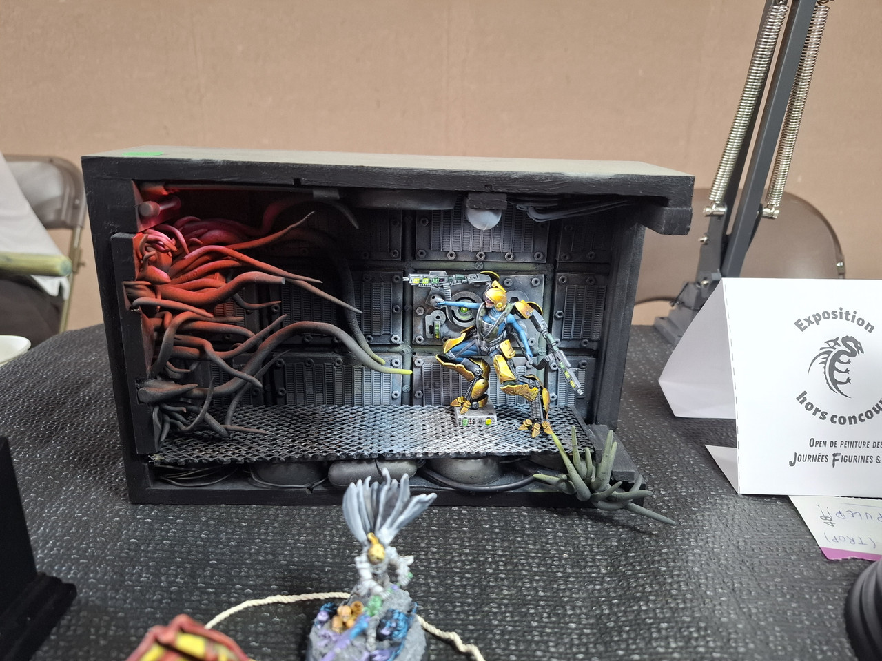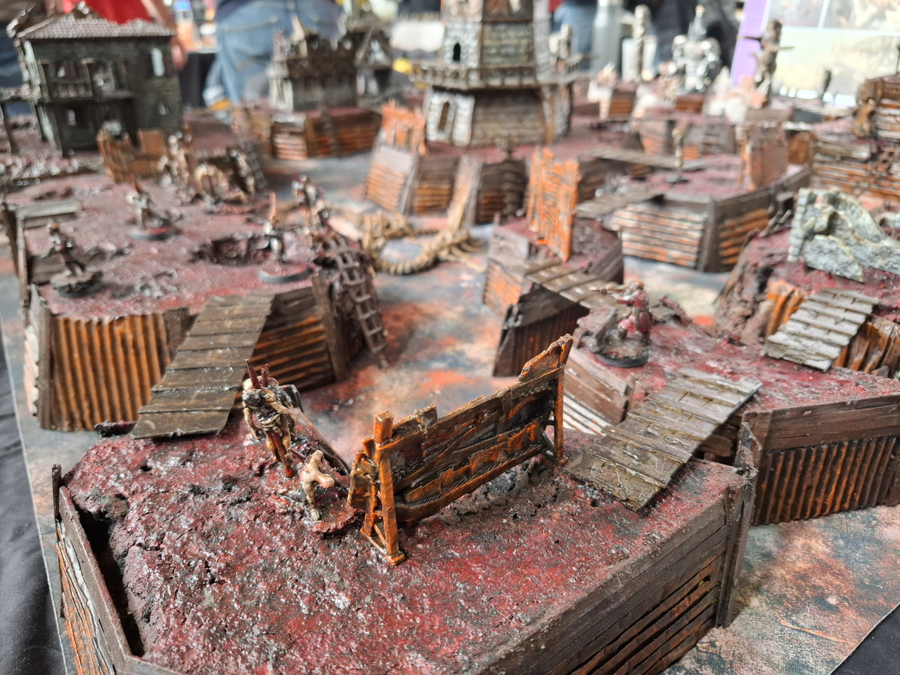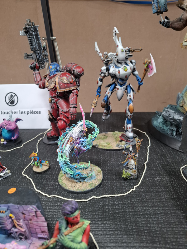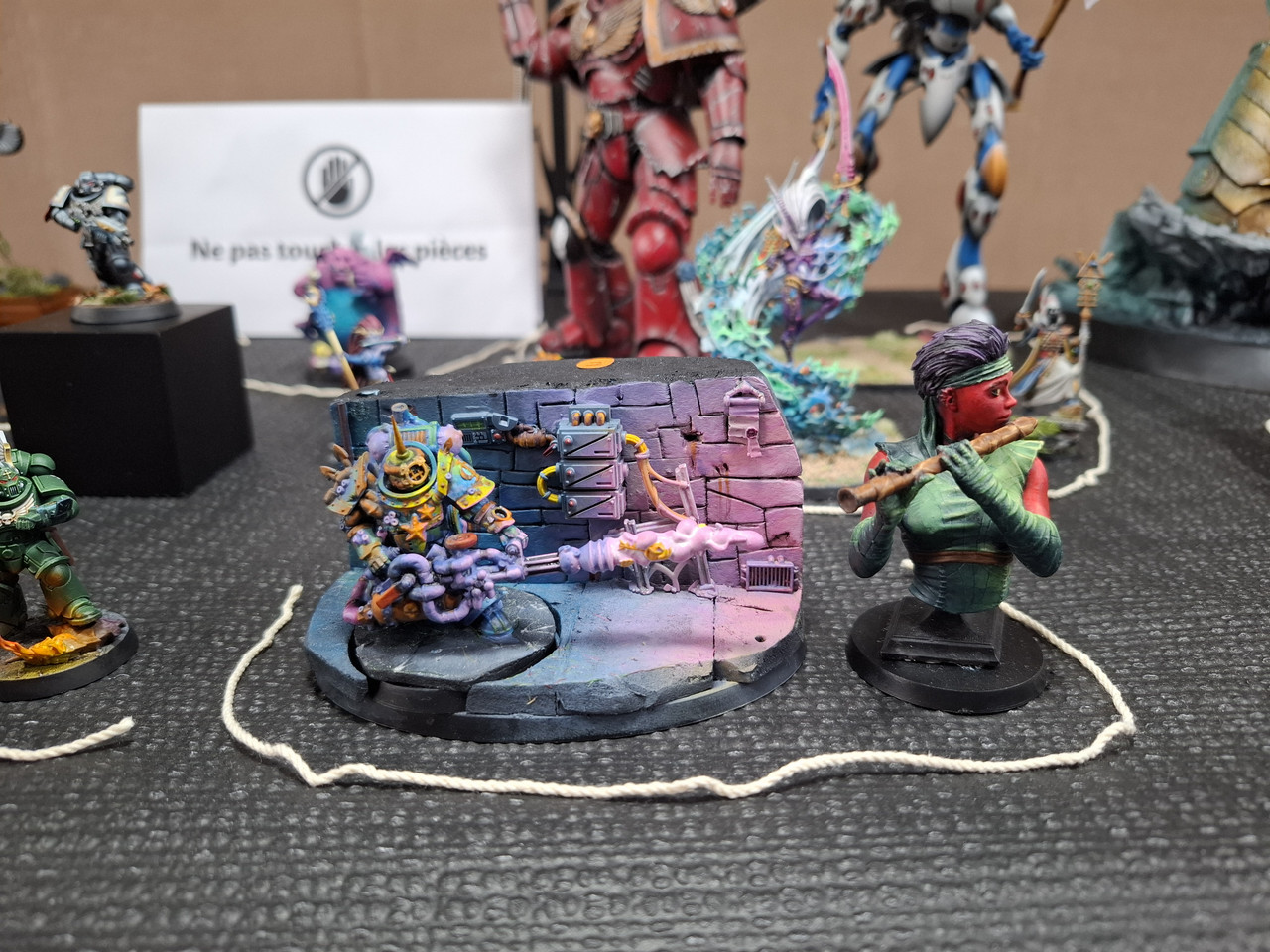 | Je l'avoue tout de suite, je n'ai pas pris de photos des tournois... Il n'y avait pas trop de place pour leur tourner autour, je ne voulais pas déranger. Il y avait toutefois de très belles tables : 40k, Old World, Infinity, Sda... |