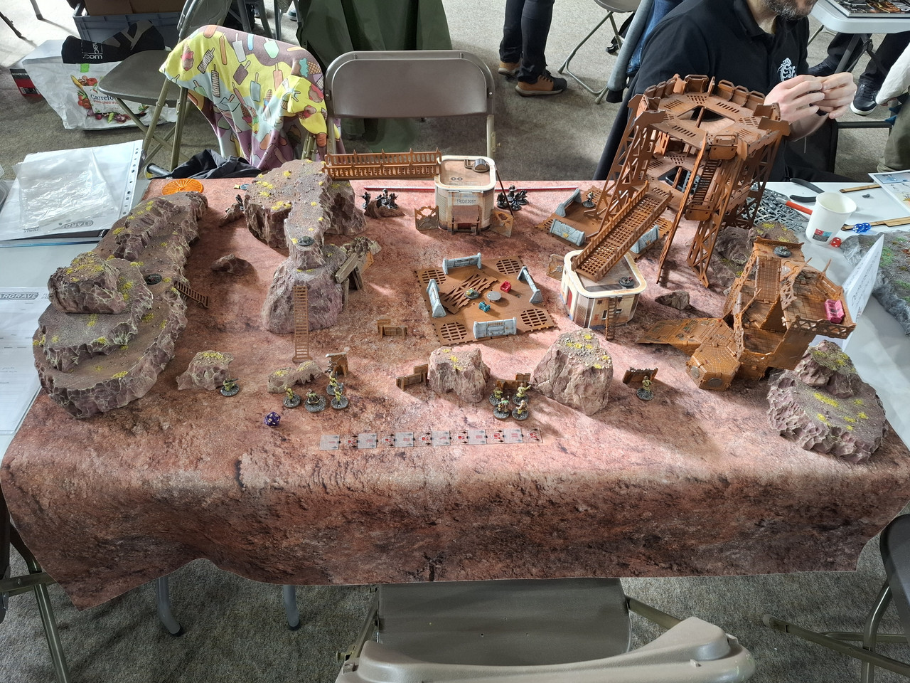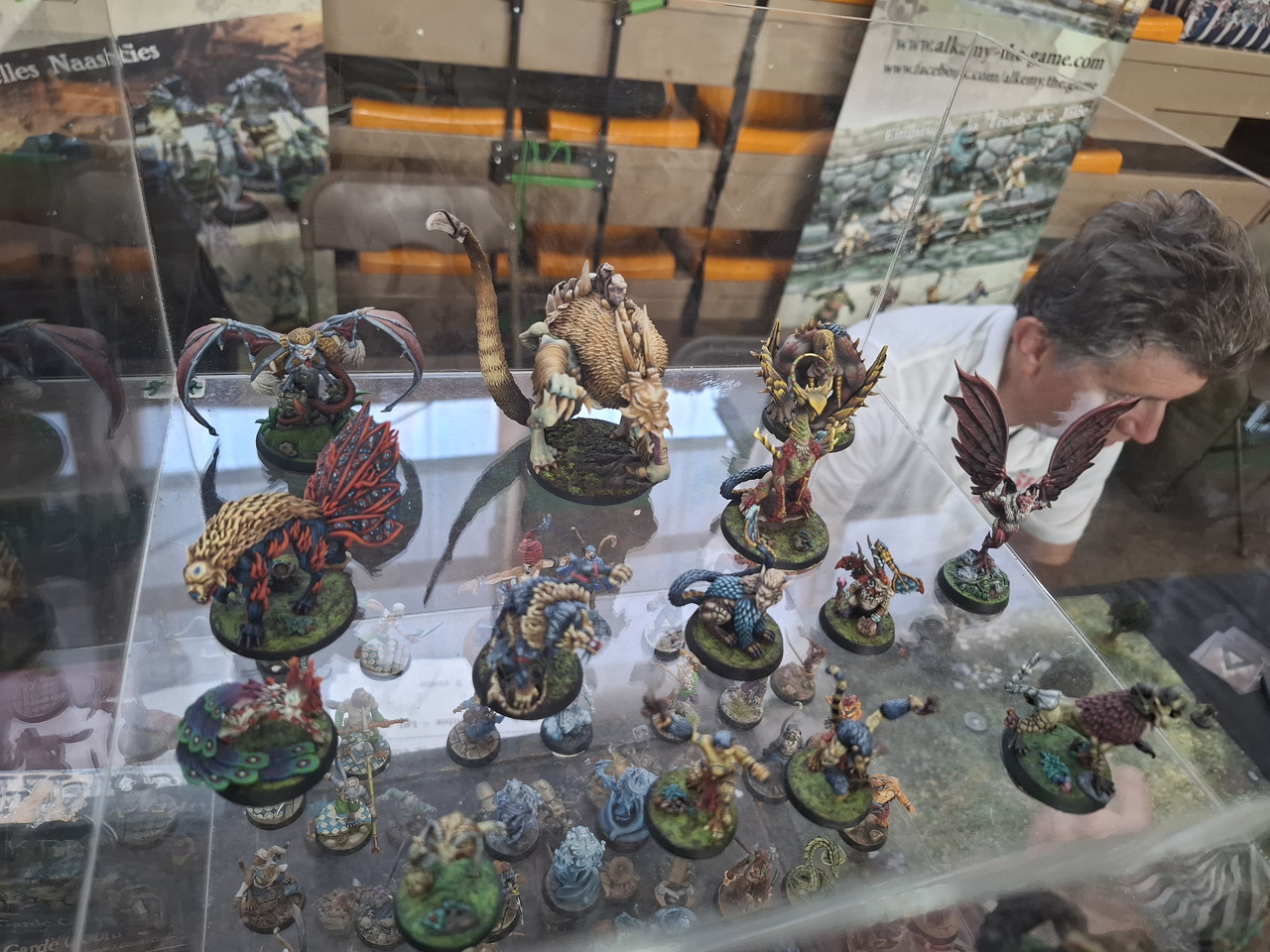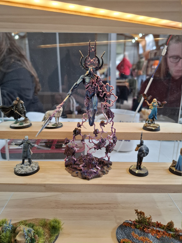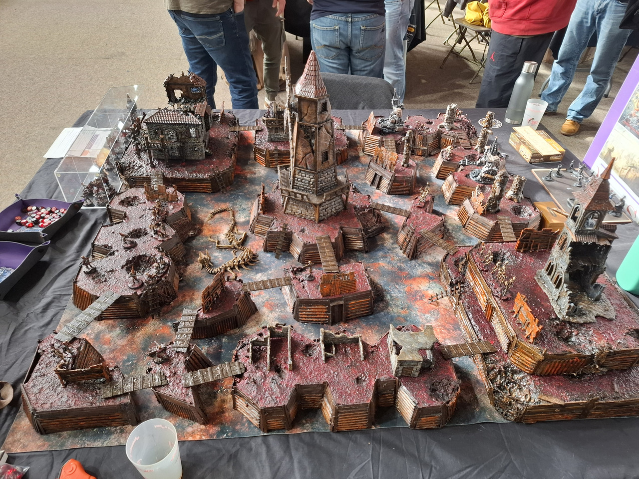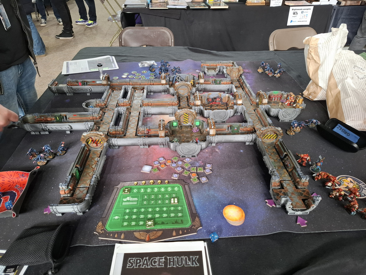 | Je l'avoue tout de suite, je n'ai pas pris de photos des tournois... Il n'y avait pas trop de place pour leur tourner autour, je ne voulais pas déranger. Il y avait toutefois de très belles tables : 40k, Old World, Infinity, Sda... |