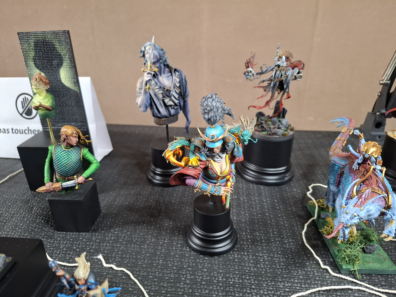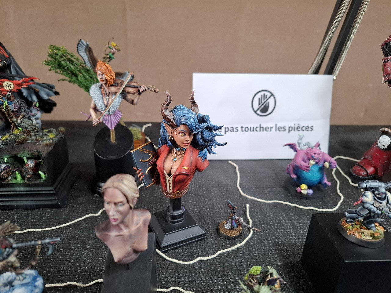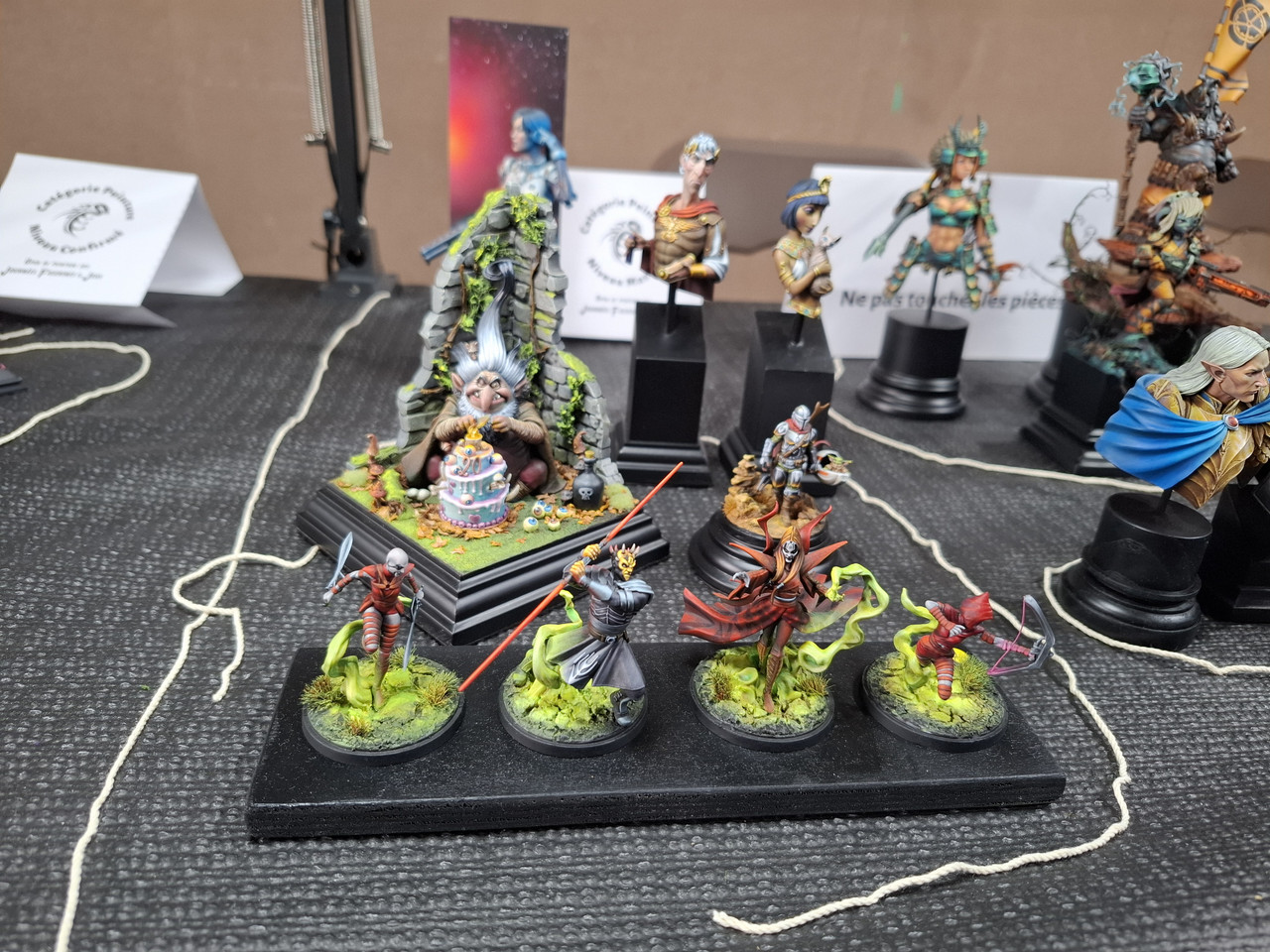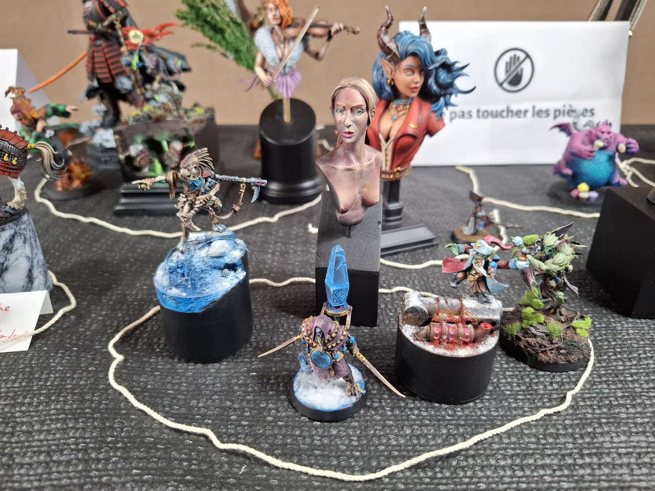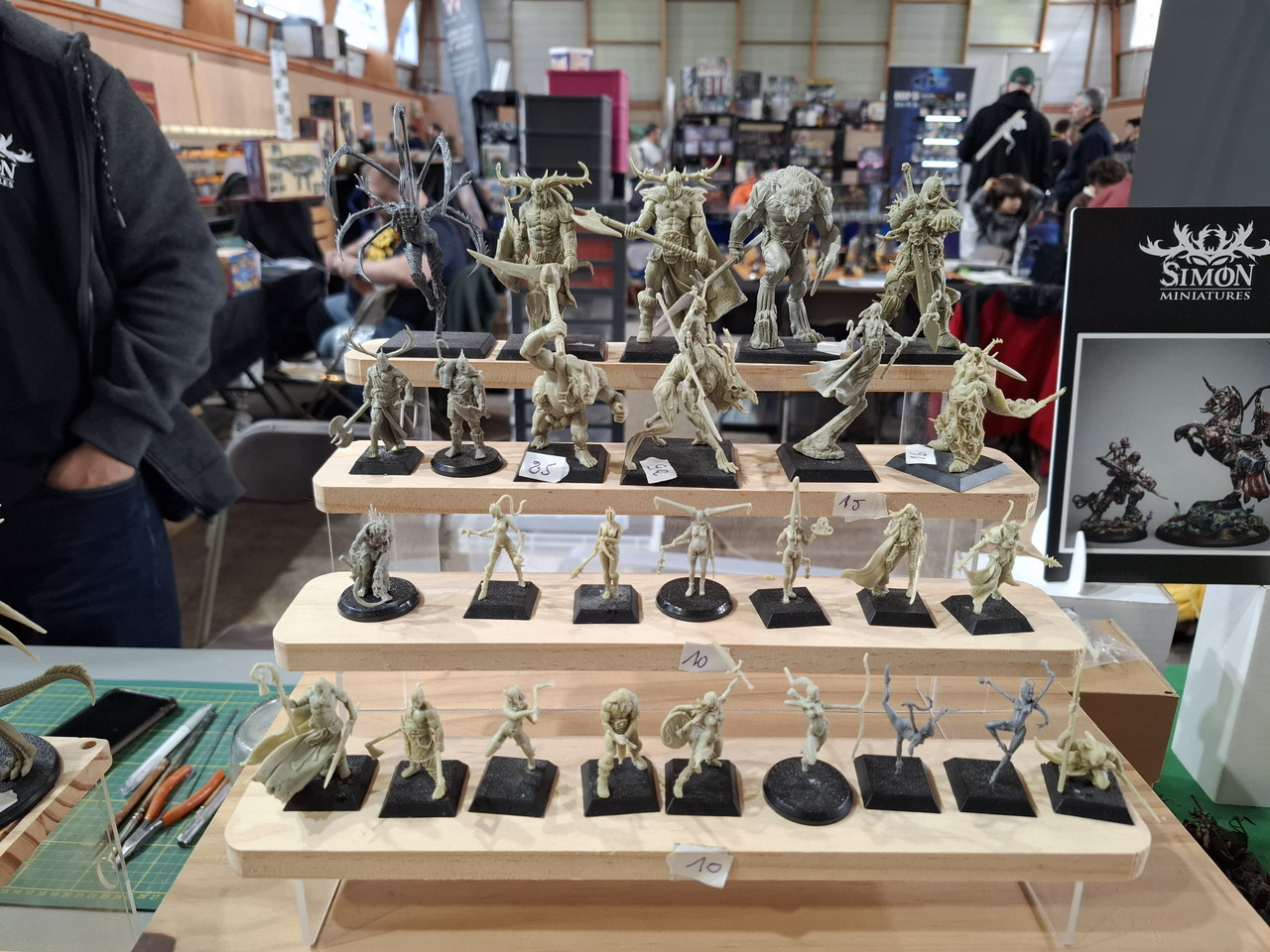 | J'ai aussi vu en vrai le travail de Stéphane Simon et... woha que c'est fin ! Mon seul achat du week-end : le vieux cornu et une lémure (3ème et avant dernière de la dernière ligne) |