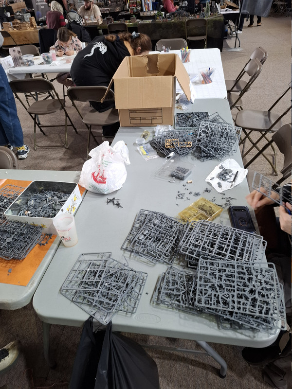 Pour les amateurs d'idées tordues, de scalpels et de collage extrême, il y avait un atelier kitbash. PLEIN de grappes et donc la possibilité de s'assumer à créer les monstruosités de son choix. J'ai laissé ma tendre et chère là le premier jour et je l'ai rejoint le deuxième. Elle a dégrappé un certain nombre d'éléments pour aider à compléter les figurines de l'atelier peinture et trier les pièces pour les créateurs fous.