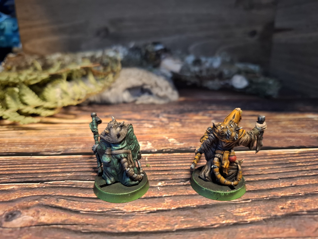D'un peu meilleures photos à la maison, on voit notamment mieux les couleurs. Juré on n'y a pas retouché entre temps. On voit bien que le traitement est bien différent sur chaque figurine et ce qu'il en ressort je trouve, ce sont deux ambiances très différentes.