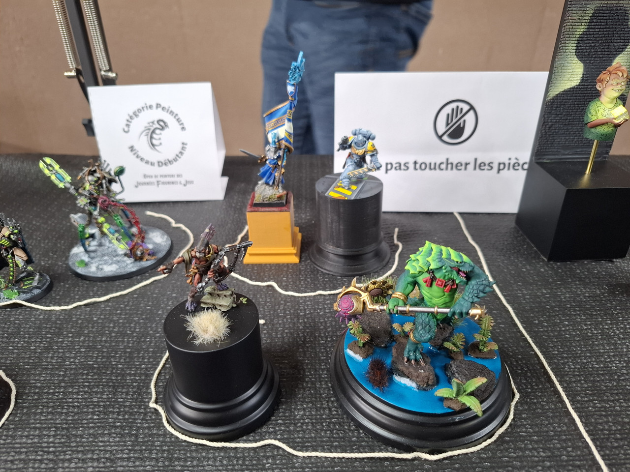 L'incontournable atelier de découverte peinture était aussi de la partie, histoire que tout un chacun puisse découvrir ce que ça fait de poser un pinceau sur un petit soldat et ça, c'est beau ! Il m'a semblé que les figurines mises à disposition étaient un mix d'impression 3D et d'anciennes figurines plastiques. Les bénévoles en ont réparées et sous-couchées sans arrêt sur le week-end, bravo à eux !