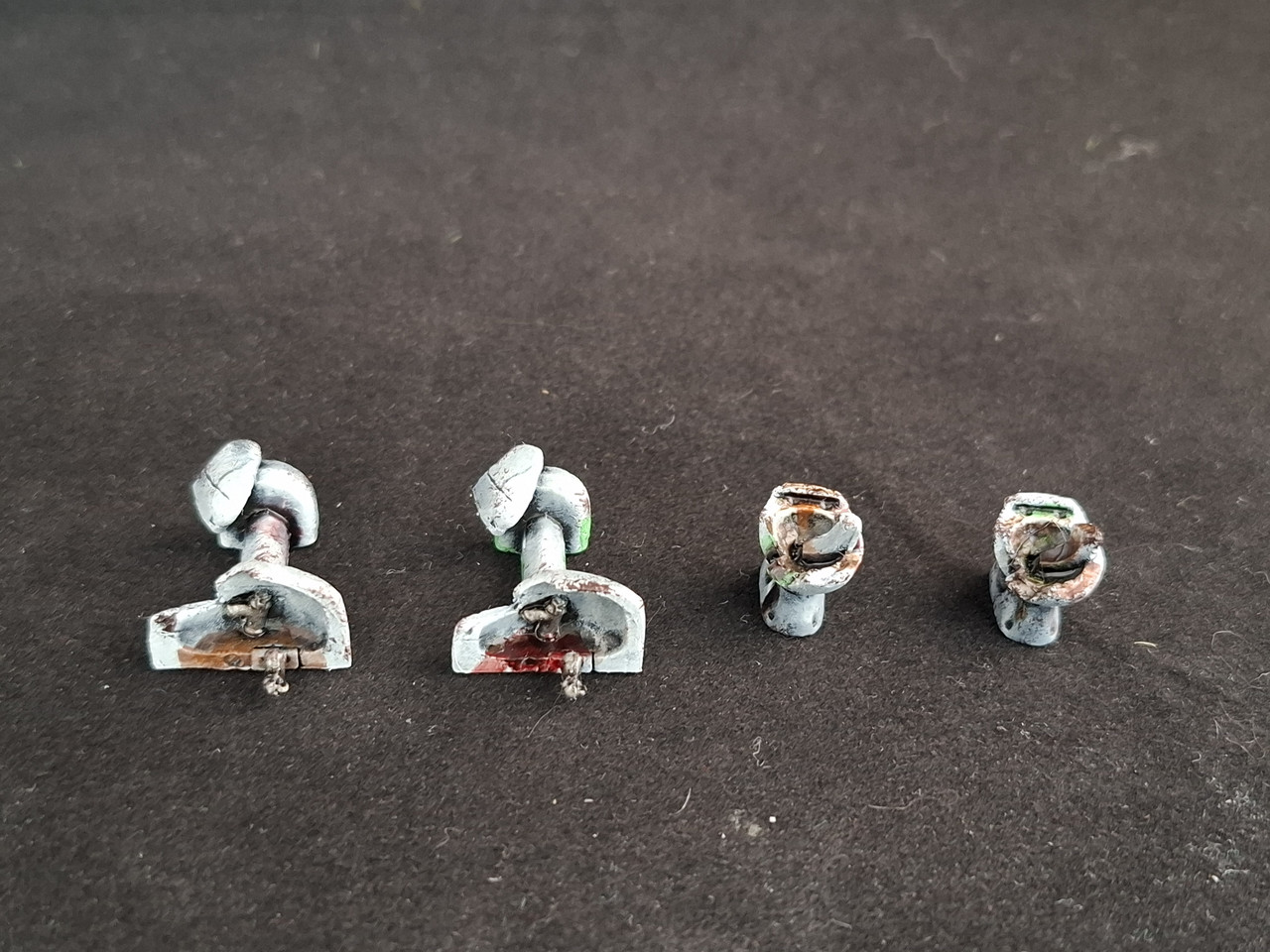 Comme je les avais déjà sous-couché, en zénithal, je ne pouvais pas appliquer mon bientôt traditionnel 3 teintes à l'éponge.