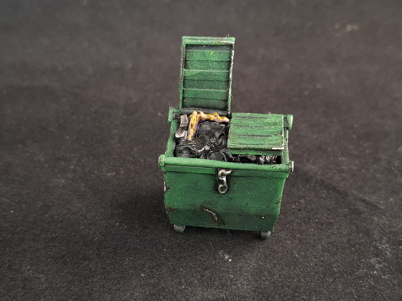 | J'ai traité par habitude avec de l'argent au centre des écailles posées à la mousse de blister. Sauf qu'une poubelle n'est pas vraiment en métal normalement |